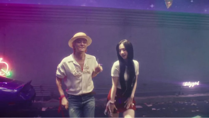 先来划个重点,MV里权志龙穿着一身蓝色长裤,依旧是那个酷到没朋友的风格,而柳智敏Karina则是一袭红色短裙搭配平底鞋,甜美又性感。两人在一辆蓝色跑车旁相遇,眼神一对上,立马开启了一段20秒的默契共舞!蓝红灯光交织,最后变成神秘的紫色,氛围感直接拉满,这画面简直绝美!